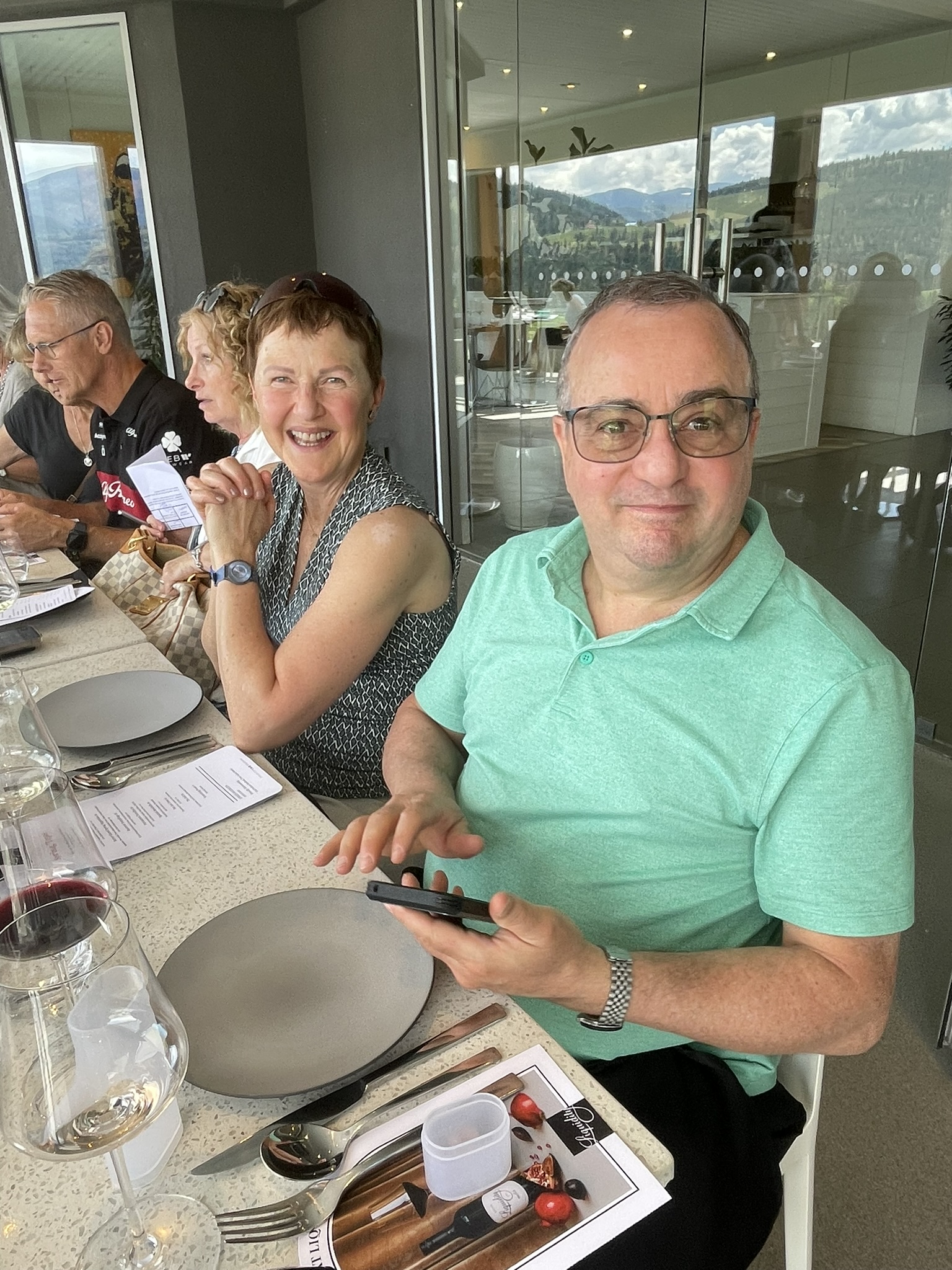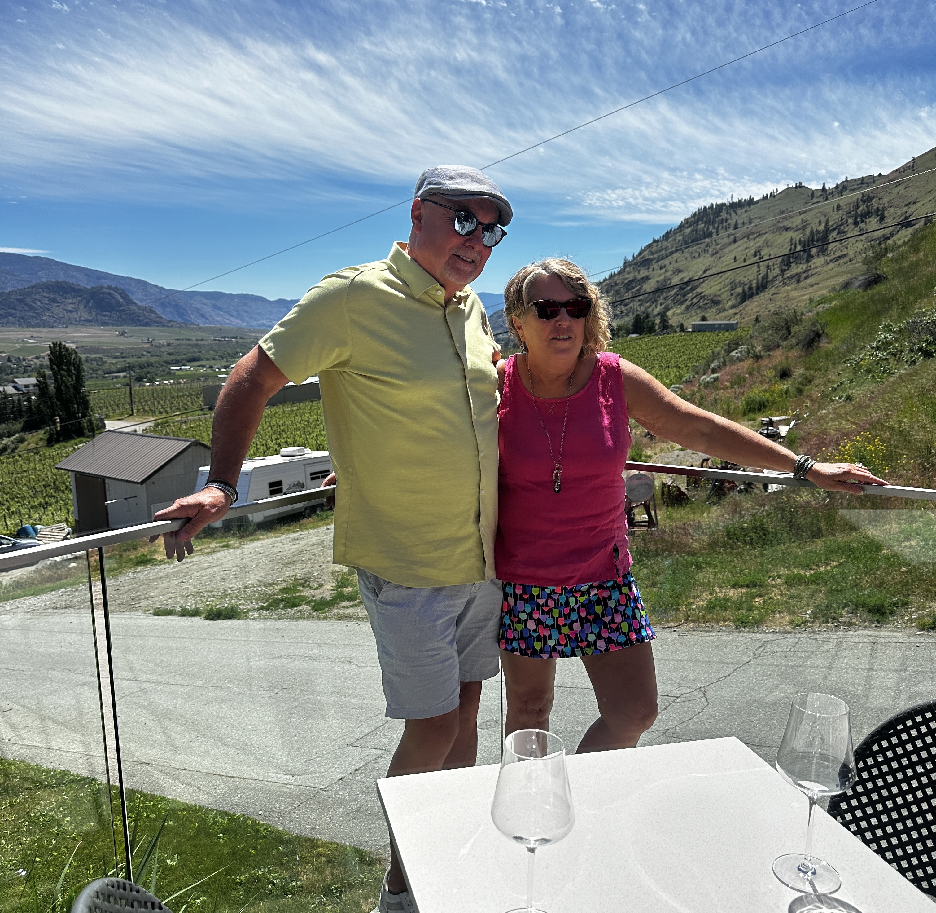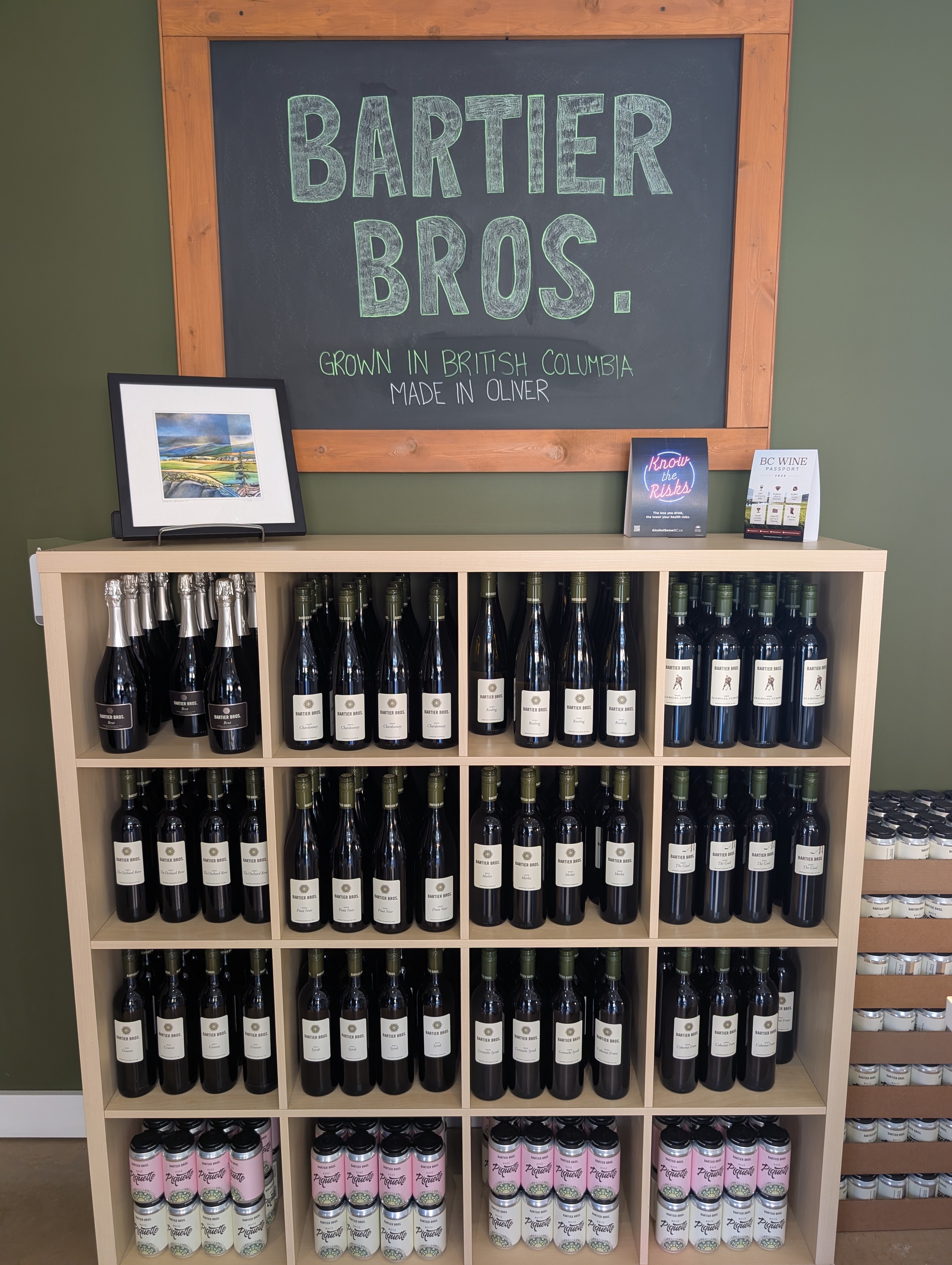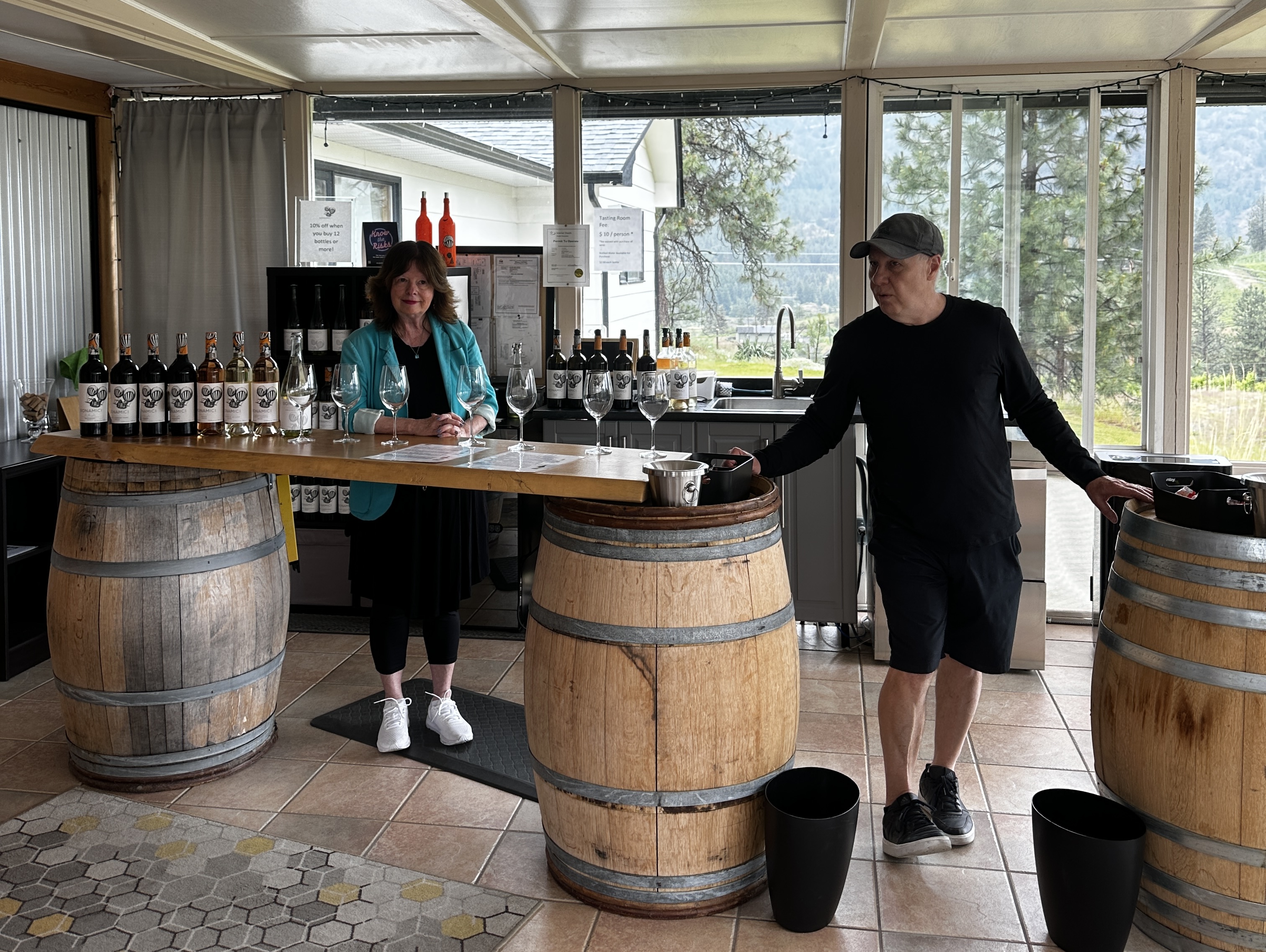 Post-lunch, we headed to RiverStone Estate Winery just outside Oliver—a gem of an independent winery with some seriously good wines. Like many in the area, they lost vines in the brutal 2022 cold snap, but adapted with imported grapes and juice from Washington state. The result? Still absolutely delicious. (Also: more purchases. We’re going to need a bigger trunk.)