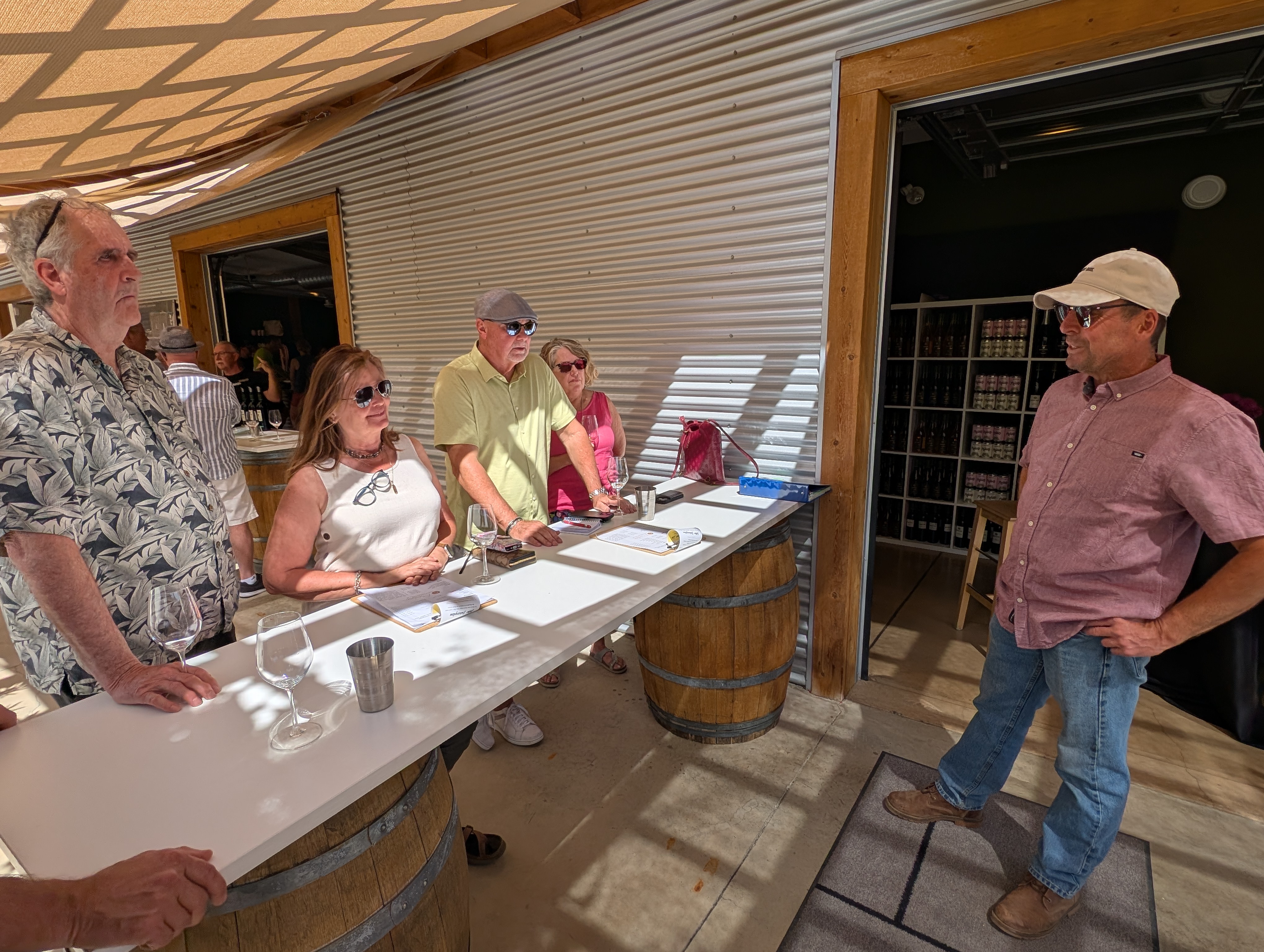 Back on the road, but this time we carpooled—fewer designated drivers, more shared laughs (and wine). First stop: Bonamici Cellars, just south of Okanagan Falls. A small but mighty young winery, where we were treated to a tasting and a passionate chat with a couple of the owners. Always love it when you can feel the heart behind the wine.