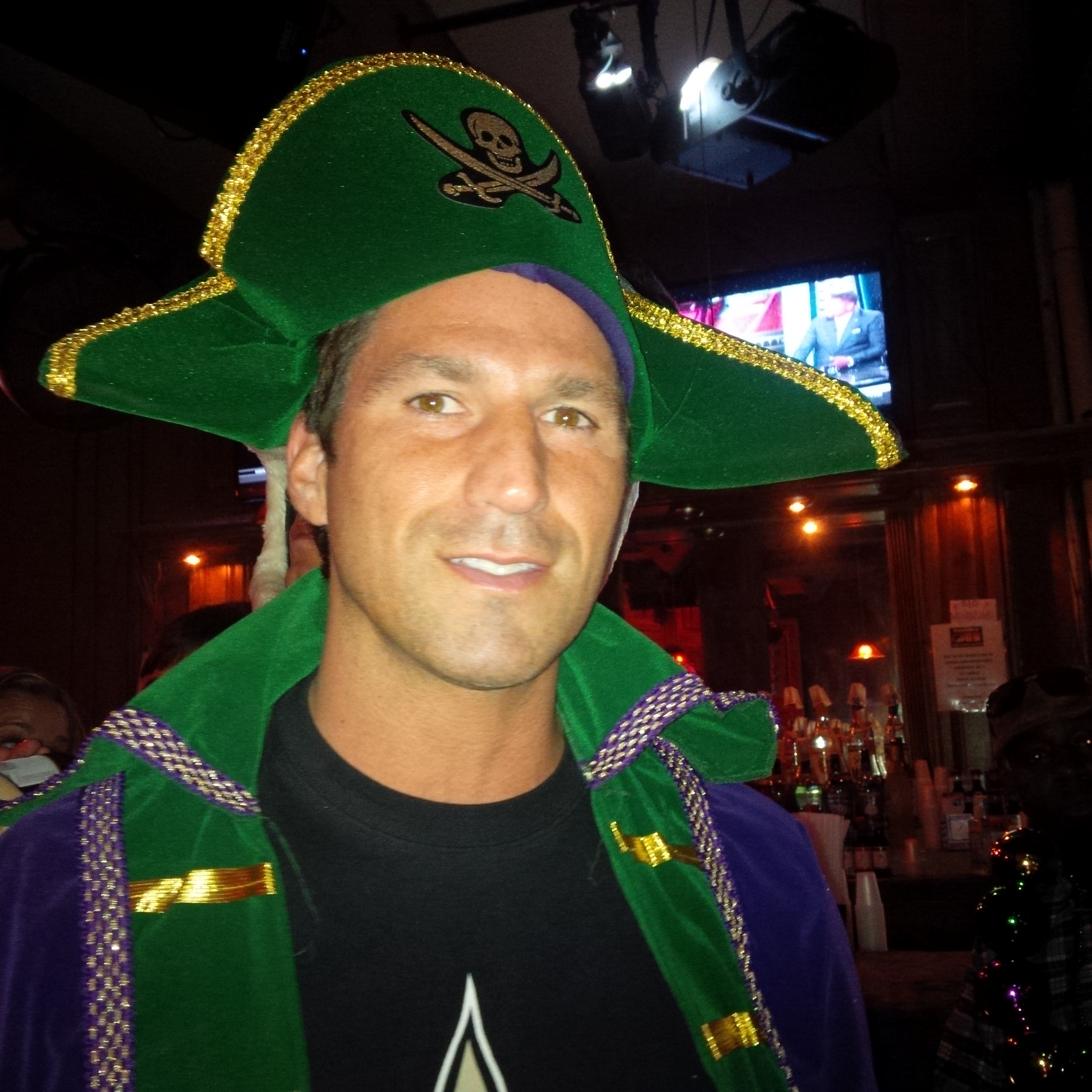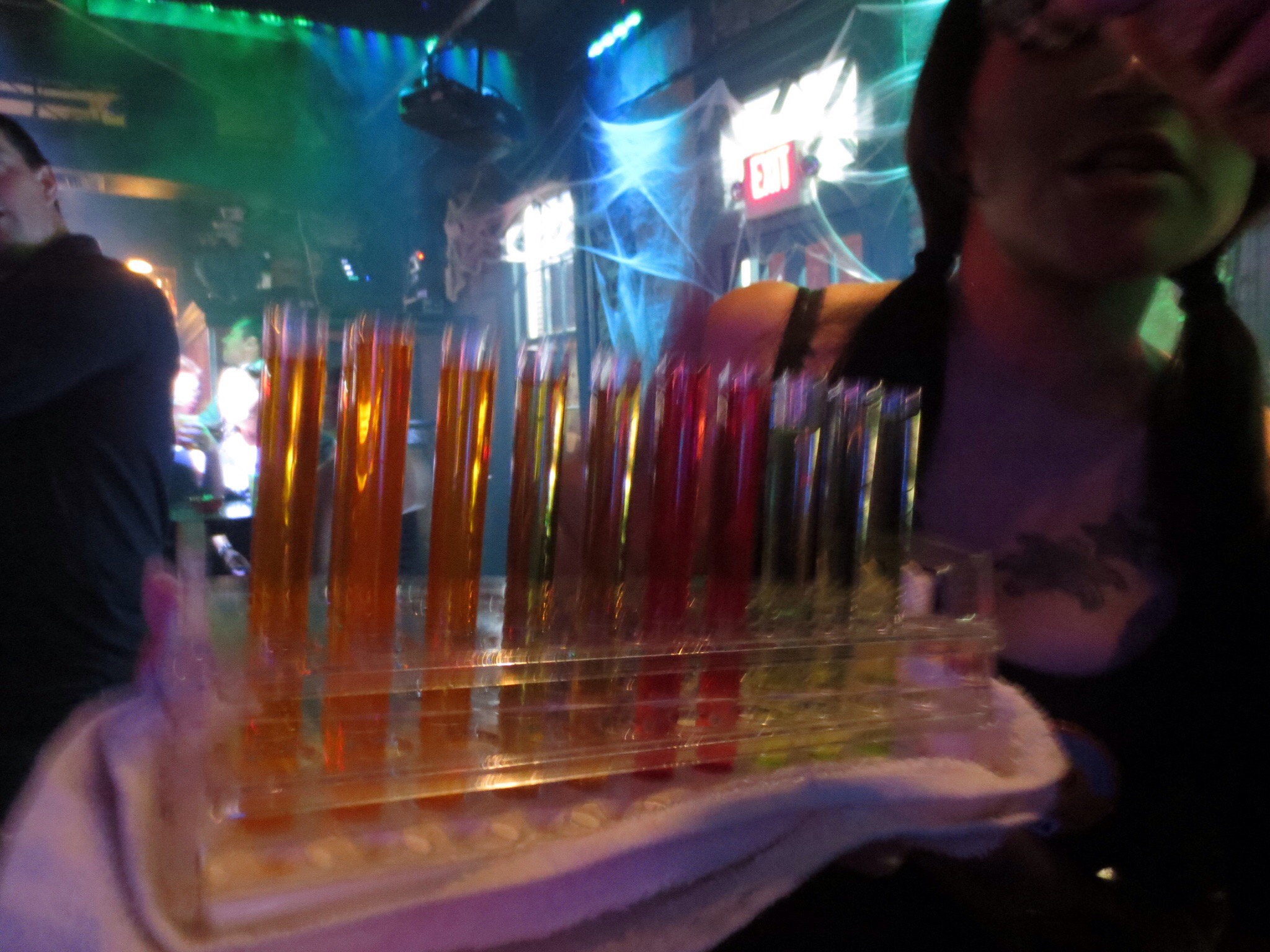 We saw devils, witches, little Red Riding Hood, nurses, doctors, pirates, parrots, spooks, monsters, Elvis, disco people, Jason, the Pope, nuns, Statue of Liberty, a Princess bride, more pirates and the list goes on and on. Robin Hood and Maid Marion had special gifts of shooters in test tubes and syringes for all who took their picture. Dave drank his first and the rest of us waited 30 mins before having ours. Thought Dave could be the guinea pig.