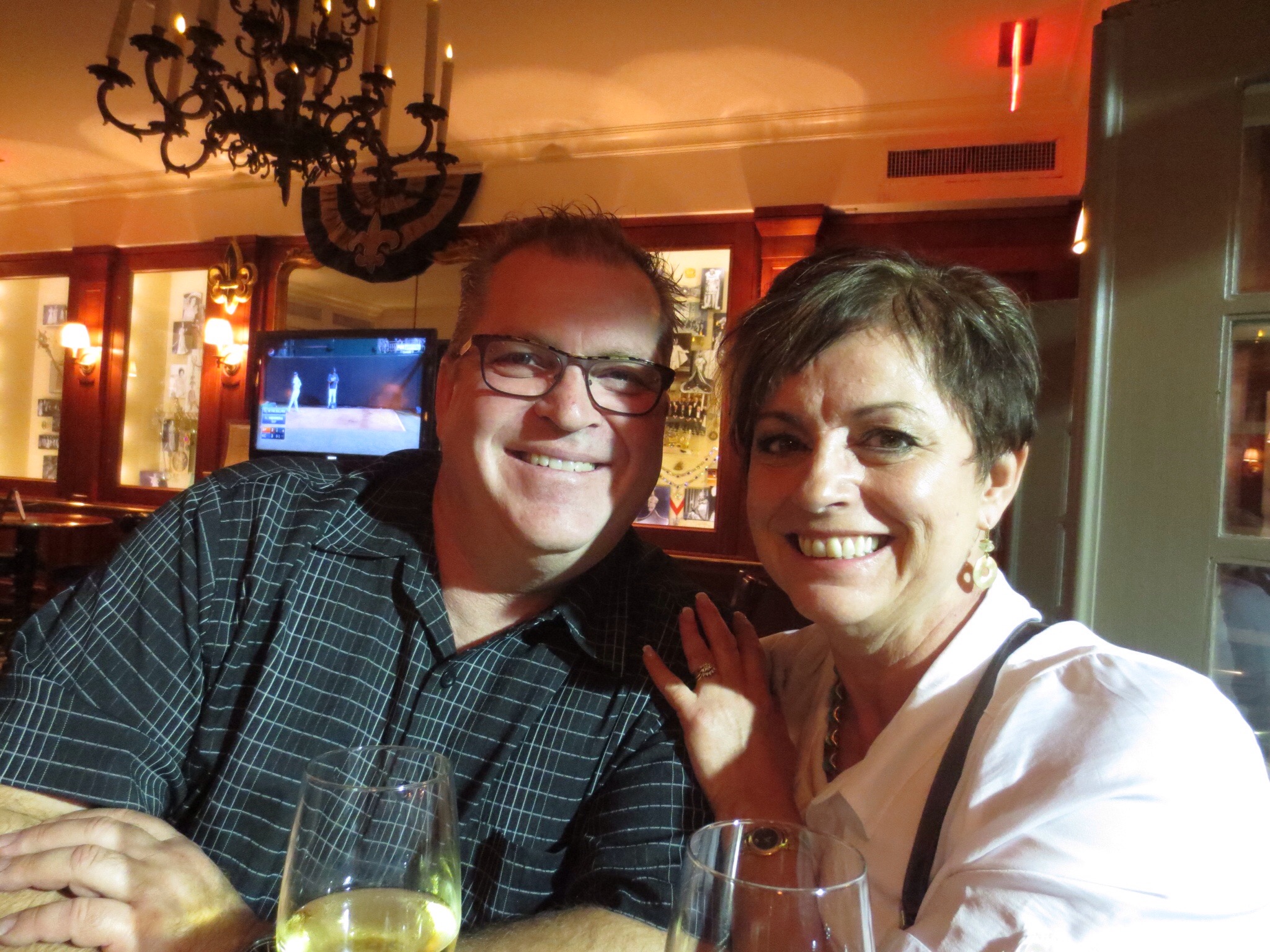 New Orleans airport – we had surprising good food. 3 cocktails, 1 beer and 2 bottles wine later we boarded our flight.