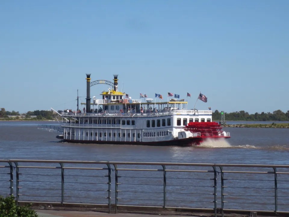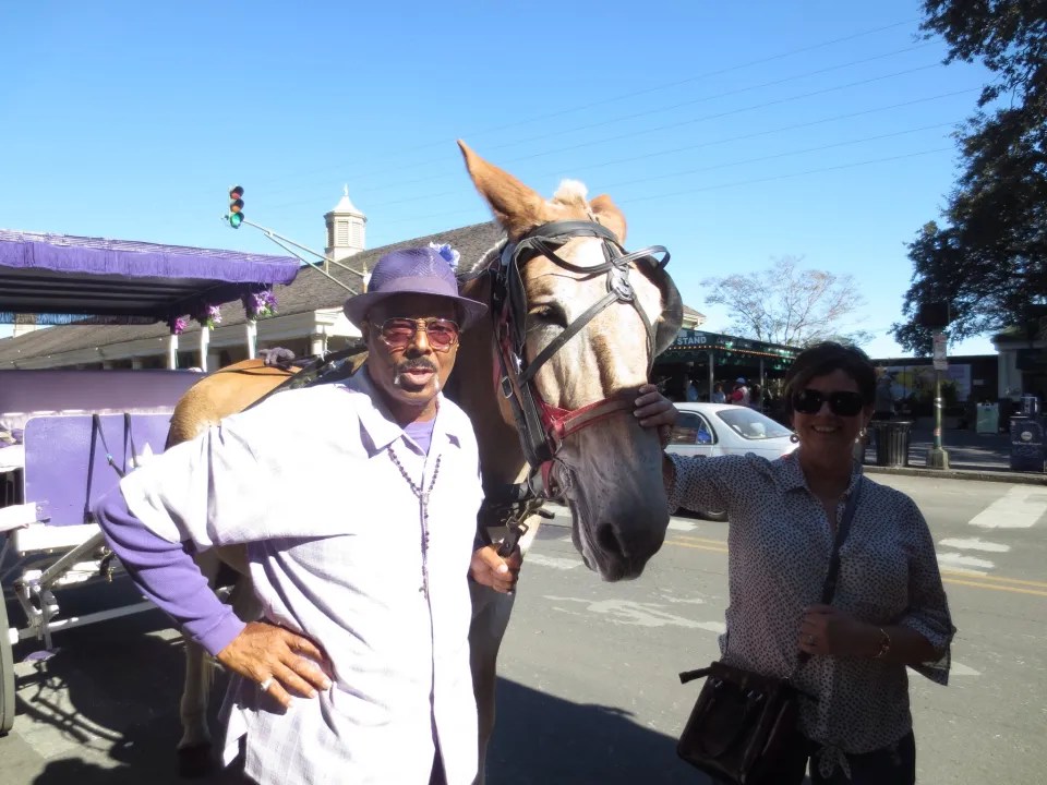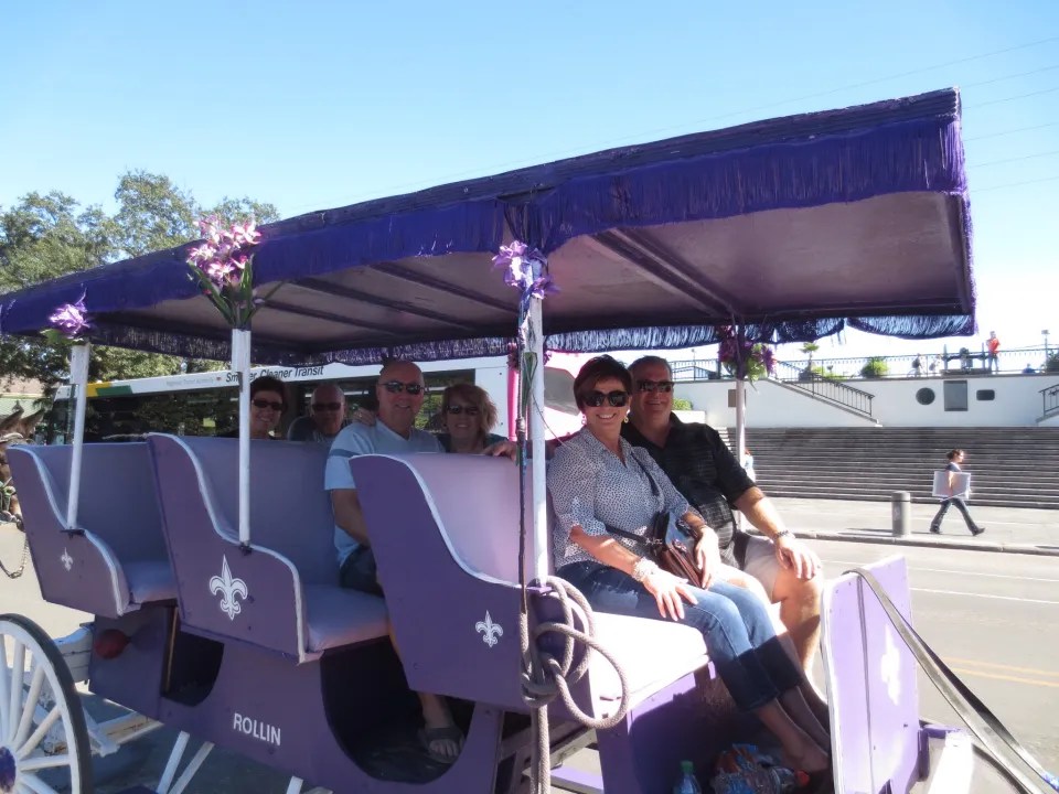 Went out wandering. we walked and walked and walked poking into various shops and we were still only 3 blocks from our hotel. Jewellery, antiques, gas lanterns and art. Stop at Hotel Monteleone because it is suppose to be haunted. Check out the carousel bar which spins (slowly thank goodness after last night :)) Walked down to the Mississippi river park. Artists and musicians. Stopped at Chartres House to have fried green tomatoes and fried oysters. Piano player on the street. Did a horse (or was it a mule) and carriage ride of the French quarter with a very entertaining guy in purple.