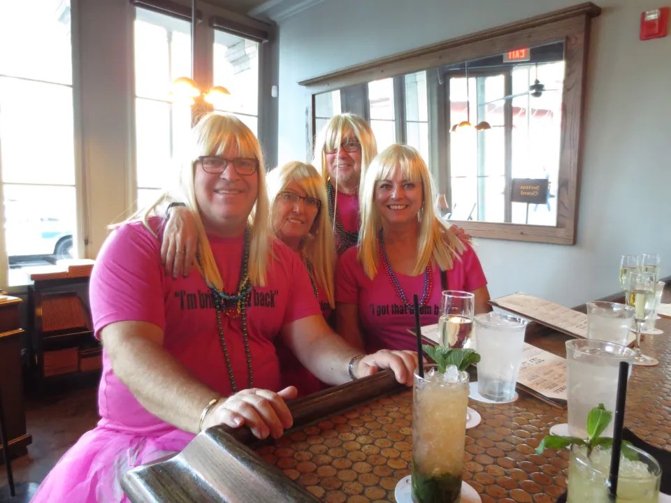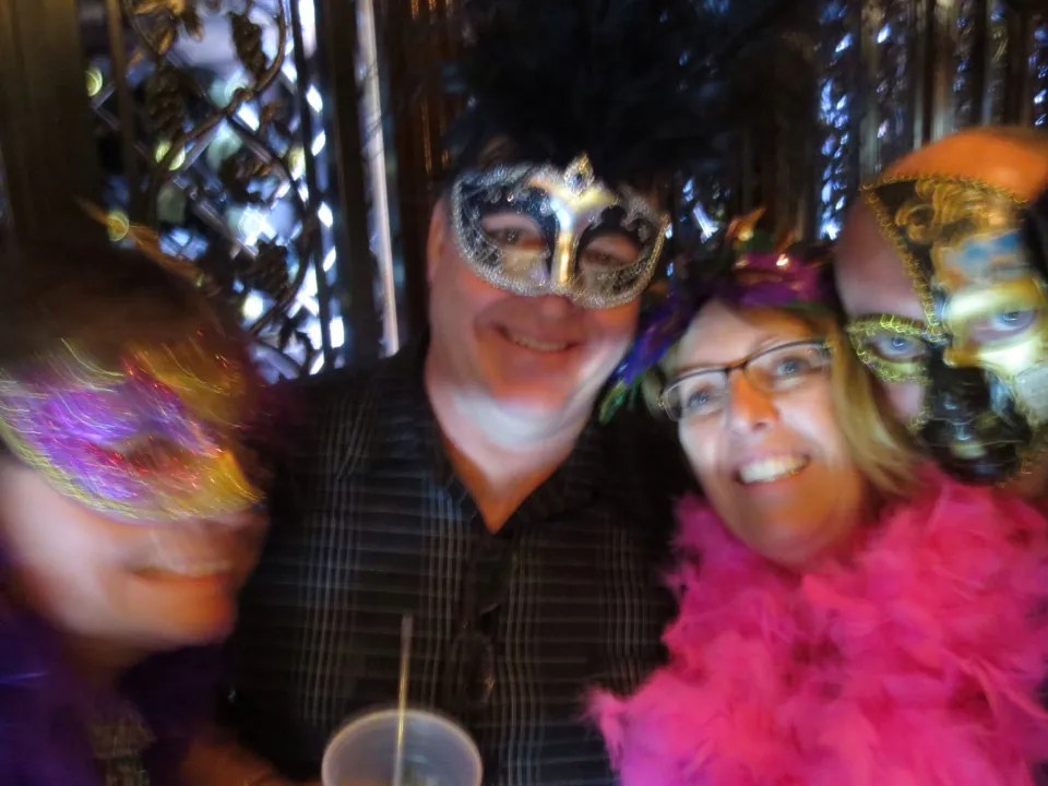 Back to Bourbon street to buy masks and tutus. This place is crazy. Several drinks later and more dancing, we all squeeze into the photo booth at the blacksmith shop which is the oldest bar in North America. Stop for supper at a wine bar. We have met so many fabulous people and most of them are Canadians. So it is back to Bourbon street for more dancing, more drinks and again it was involving poles. By the end of the night someone had lost glasses , someone had a broken toe and someone had lost a wallet
