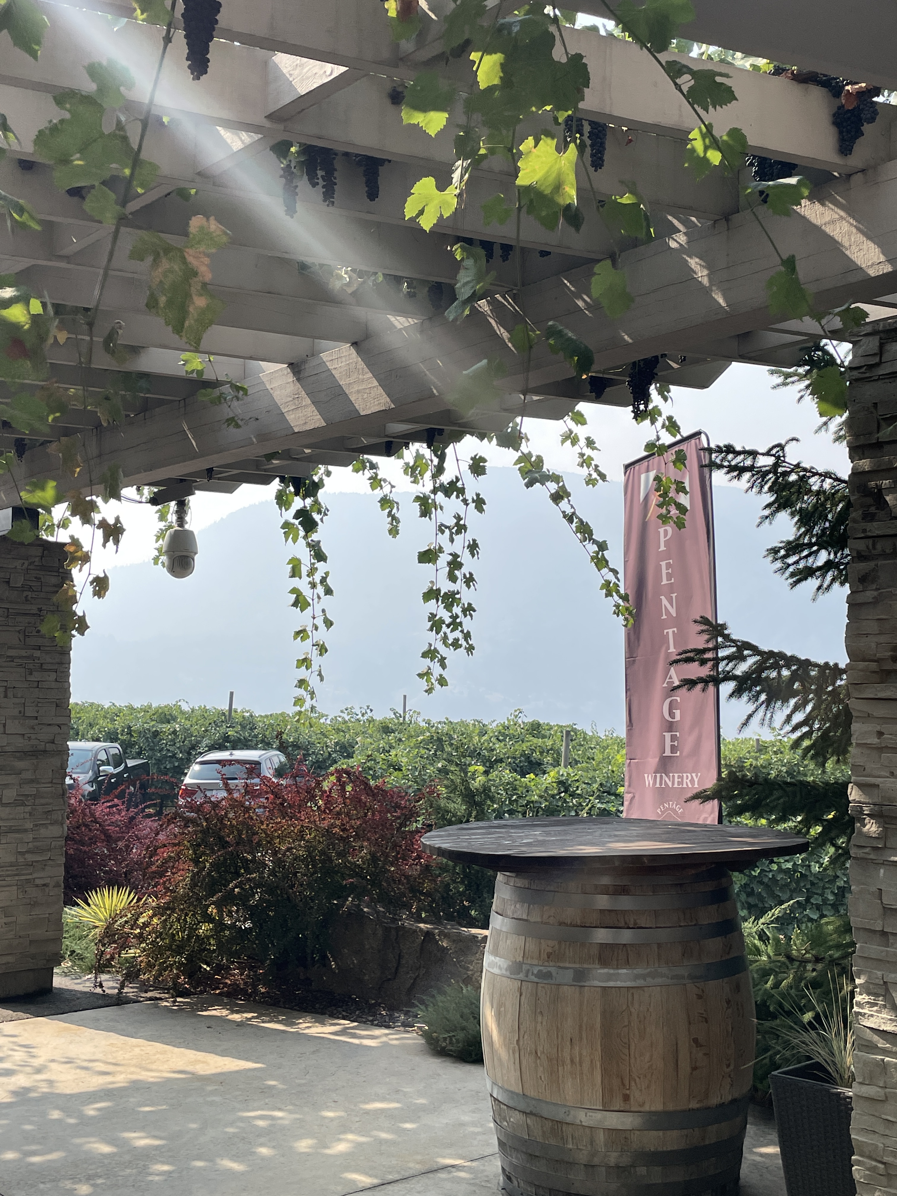 And then we head down to Penticton, park the RV and continue on to the Naramata Bench to Upper Bench Winery. They have cheese and wine! Bonus! Then southeast of Penticton to Pentage. Spectacular