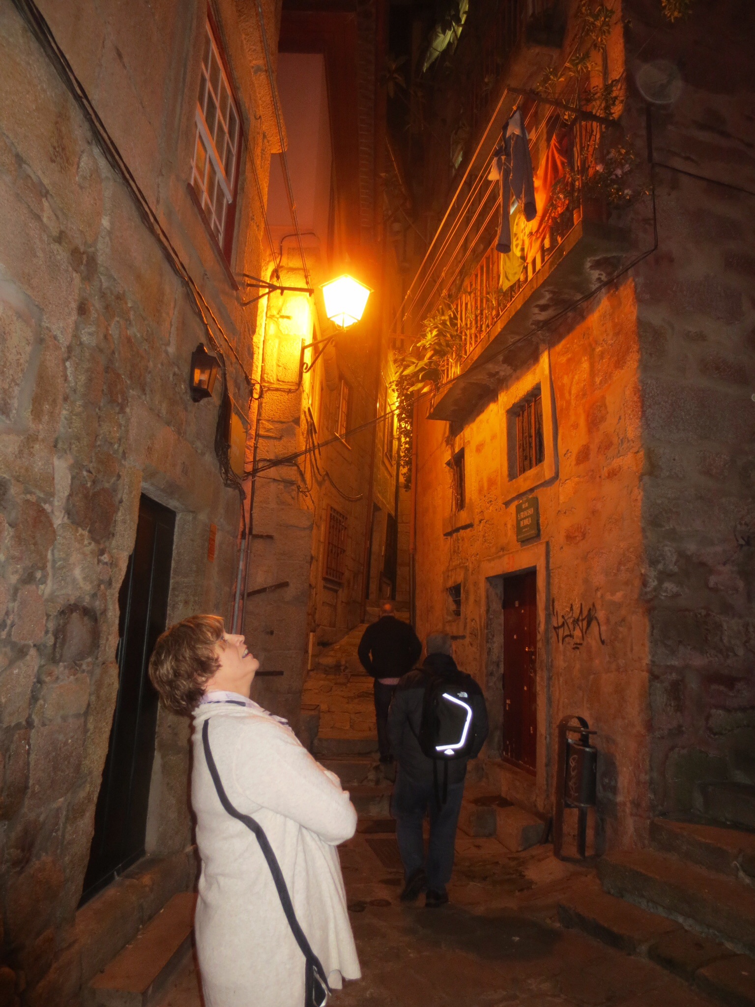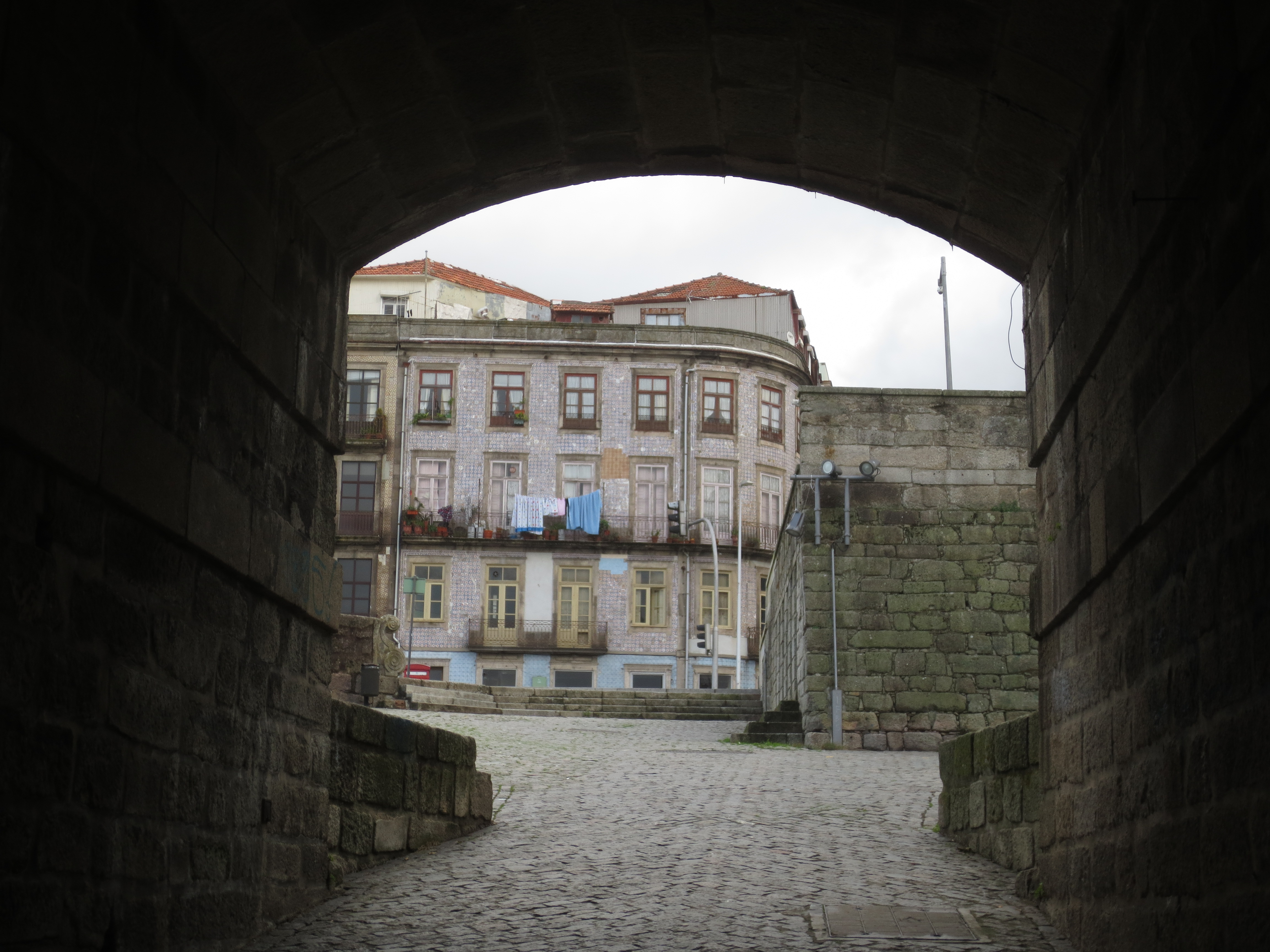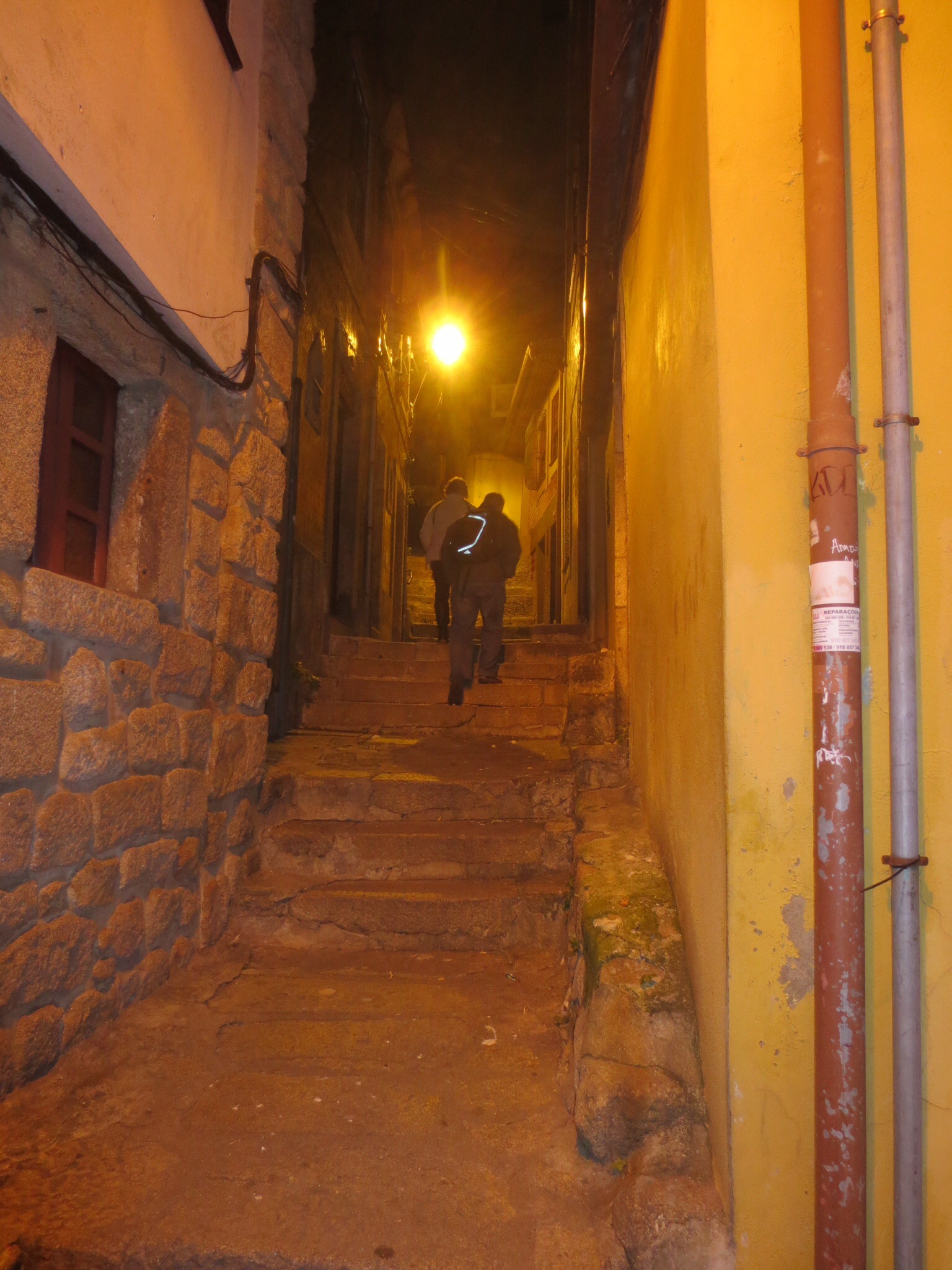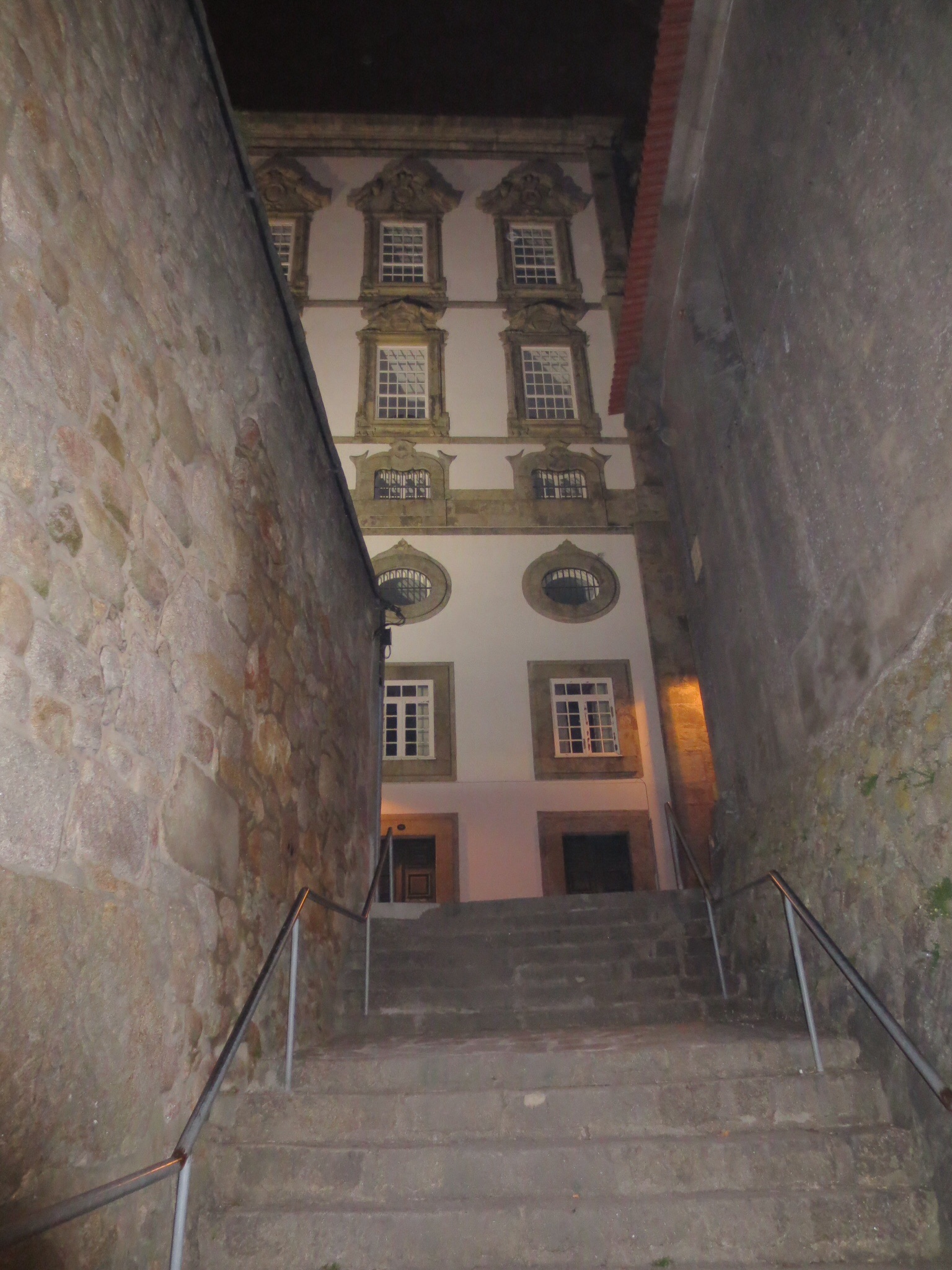 We go out in search of supper and end up down by the water at Praca Ribeira. We have a great supper and then decide to take a narrow alley that has stairs that go up and up and up and up. Finally we end up at the castle Estacco de Sao Bento and Se Catedral (not a spelling error) . We start down through winding narrow alleys and when we come out to a street we are right across from our apartment.