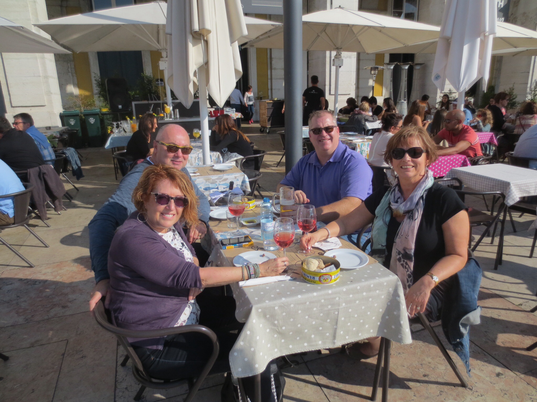 Long travel day but we finally end up in Lisbon around 6 pm despite events that have happened in Paris. We meet up with Dave and Liz and head out on the town for supper. I had Portuguese mussels…… aka as clams. Sorry inside joke. Ahh.. Lisbon. What can I say? Cobble stone, ceramic tiles, beautiful architecture, food, wine…… We love this city. We are staying at The Beautique Hotel which is in a great location, right where it is all happening. After supper we end up in Barrio Alto area (aka bar area) and we wander and people watch and sample