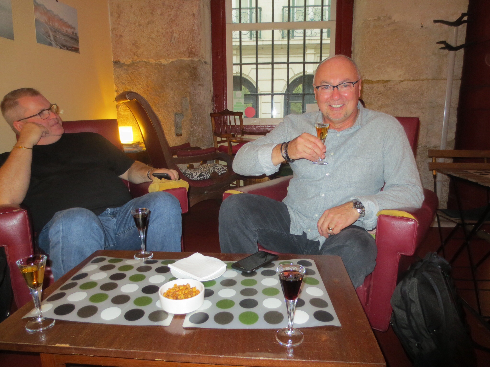 Once back from the tour, we head away from the hotel to the north for a new area for supper. Seafood stew was a hit. Another place for port and more custards from the famous Belem castle. We did a tasting of ginjinha liquor. Yummy. Then it is more wandering around town and end up close to the river again at the pink street (aka red light district) This time it is for beer – Sangras and Radler limon. Since we have visited many washrooms, I have to say that for being such an old city the restaurant and bars have washrooms that are modern and clean. This is unlike our trip to New Orleans a year ago. Another comment about restaurants – as you walk down the street a hustler will entice you to his restaurant. Meals are very reasonable and service is good up until it is time you want the bill. Then they ignore you. Weird. You would think they would want to turn over the table with new clients.