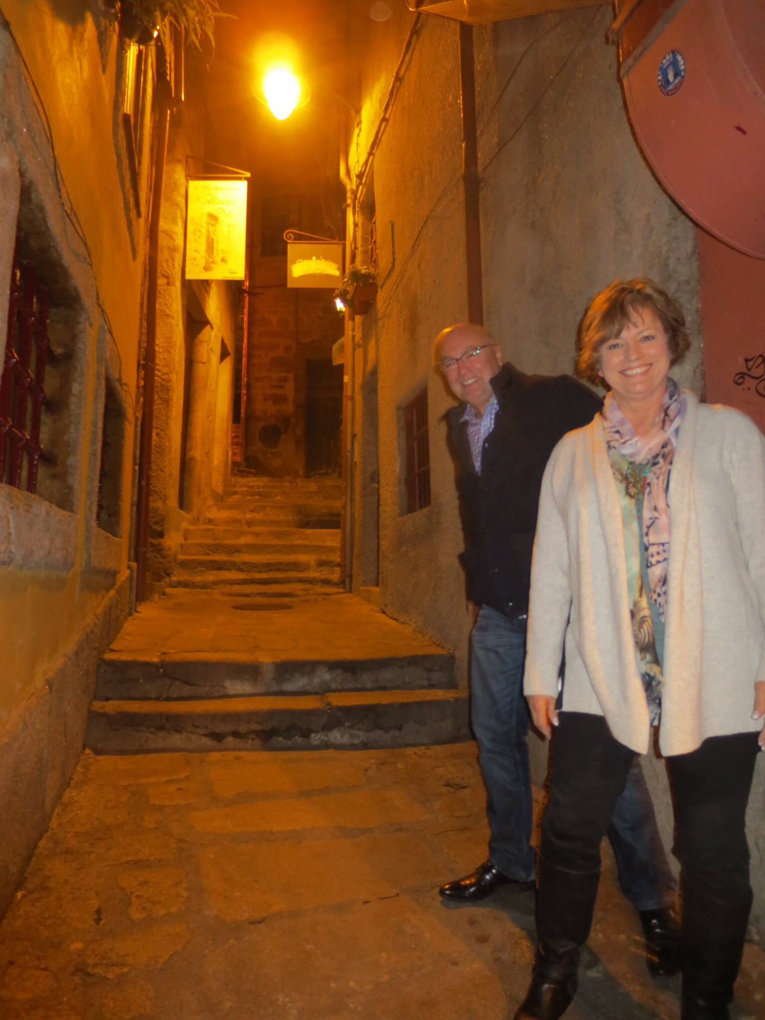 We grab lunch at a sidewalk cafe on the way back down. More wine of course. For dessert we stop a little farther down at a little place for port.