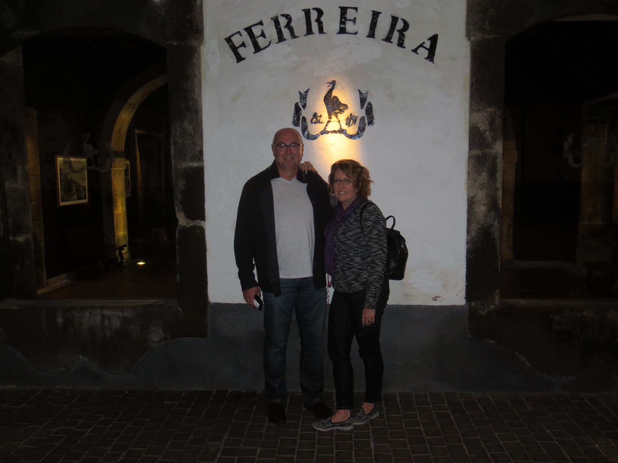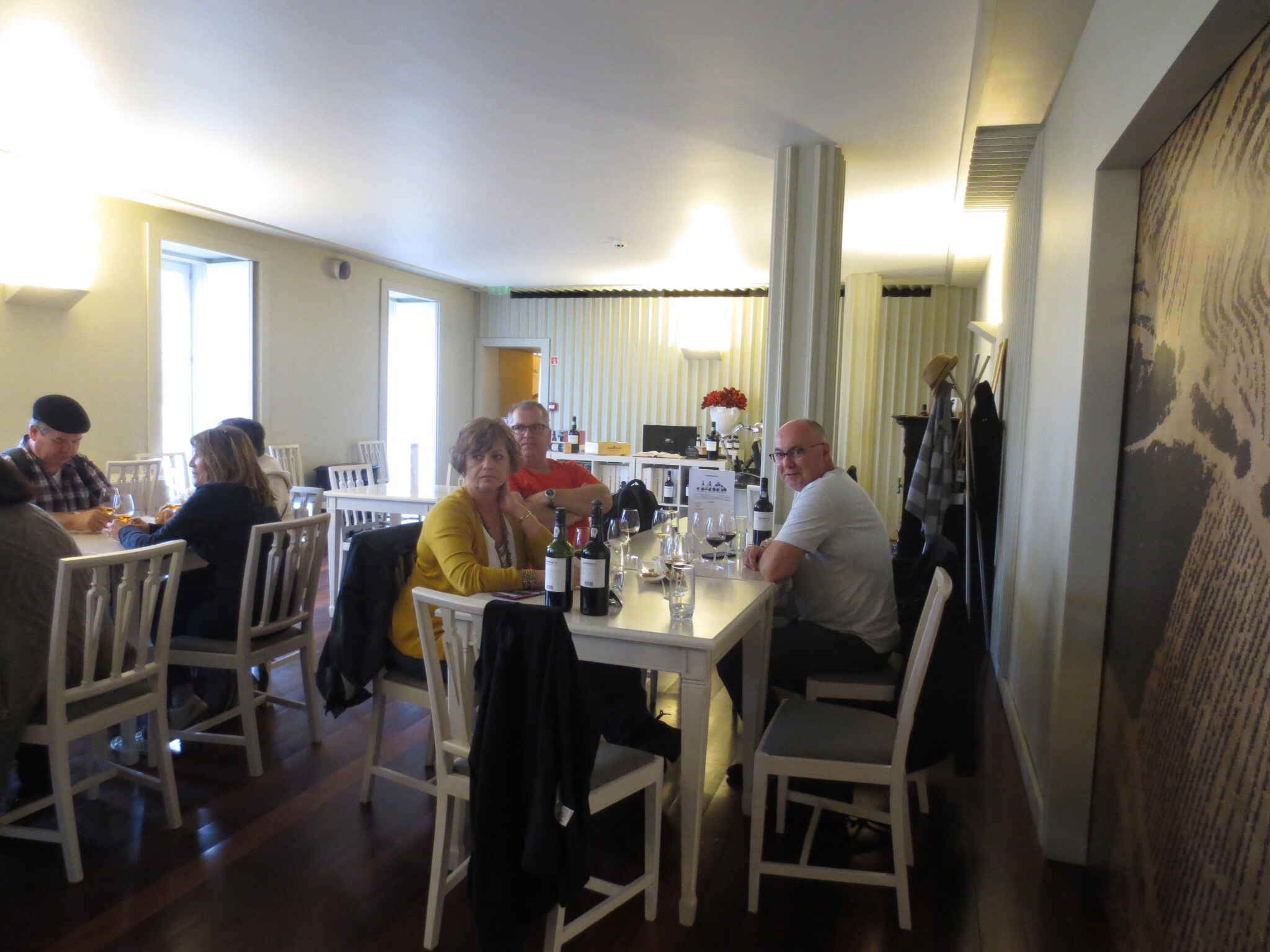 We are up early and out the door to meet Jorge and head out of town to tour the Duoro valley. Beautiful valley and small od vilages. First stop Amarante. Picturesque! Euculyptus, maple and oak trees. An old monestry that is now a hotel and restaurant (michelin star). We tour the church and then continue down the valley. We are climbing higher up the mountains and catch a spectacular view of the valley filled with fog and only the mountains peeking out. Unfortuantely the road is too narrow to stop and take pictures. The vineyard terraces are an Unesco site because the orginal terraces were built by the Romans. We have a short stop at Regua which the government area of the Duoro valley and where all boat tours end. We continue on to another small village of Pinhao for lunch. Family style plates of veal, octopus and chicken and flowing wine. Fabulous. Then it is off to the Symington family estate. They own Graham”s, Dow’s, Cockburn’s and Warre’s to name a few port houses. We get a tour of the Quinta (farm) with the vats and the barrels. We end with a port tasting. And then it was the long ride home 140 km, some of it on narrow curvey roads with drivers who do not respect the center line and the fact that you can’t see around the bend and then on the major motorway with a ton of traffic tailgating. Good thing most of us slept.