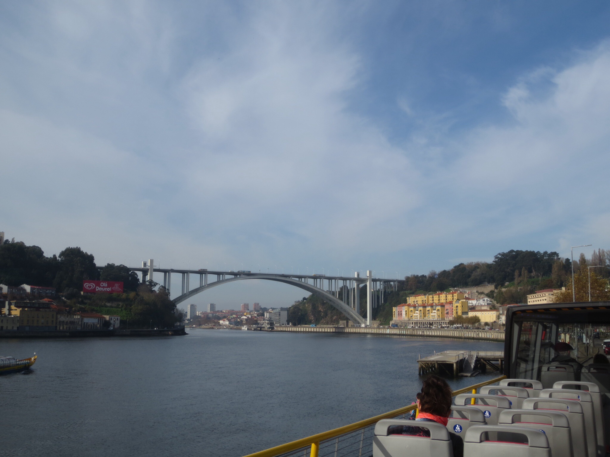 Since we didn’t do much bus riding yesterday, we made sure we got out the door a little earlier today and got on the bus. We did the whole route and only got off the bus twice. We got our monies worth unlike yesterday. We are staying right by the medieval area of Porto so on the bus we got to see the slightly newer area of downtown where the market and shopping is and then all the way out to the coast. Along the way there were some very nice homes, parks and monuments. At the coast, it had a resort feel. The waves were huge and there were a lot of surfers catching the waves. We got off to enjoy lunch and had a fabulous appetizer of octupus in olive oil, peppers, and tomatoes with a Churchills Rose prior to our main course. Got back on the bus that took us over to the south side of the river (where we were yesterday). Got off to enjoy port and sangria and then caught the bus again that took us up the hill above the port houses and eventually back to north side of river where the VRBO is.