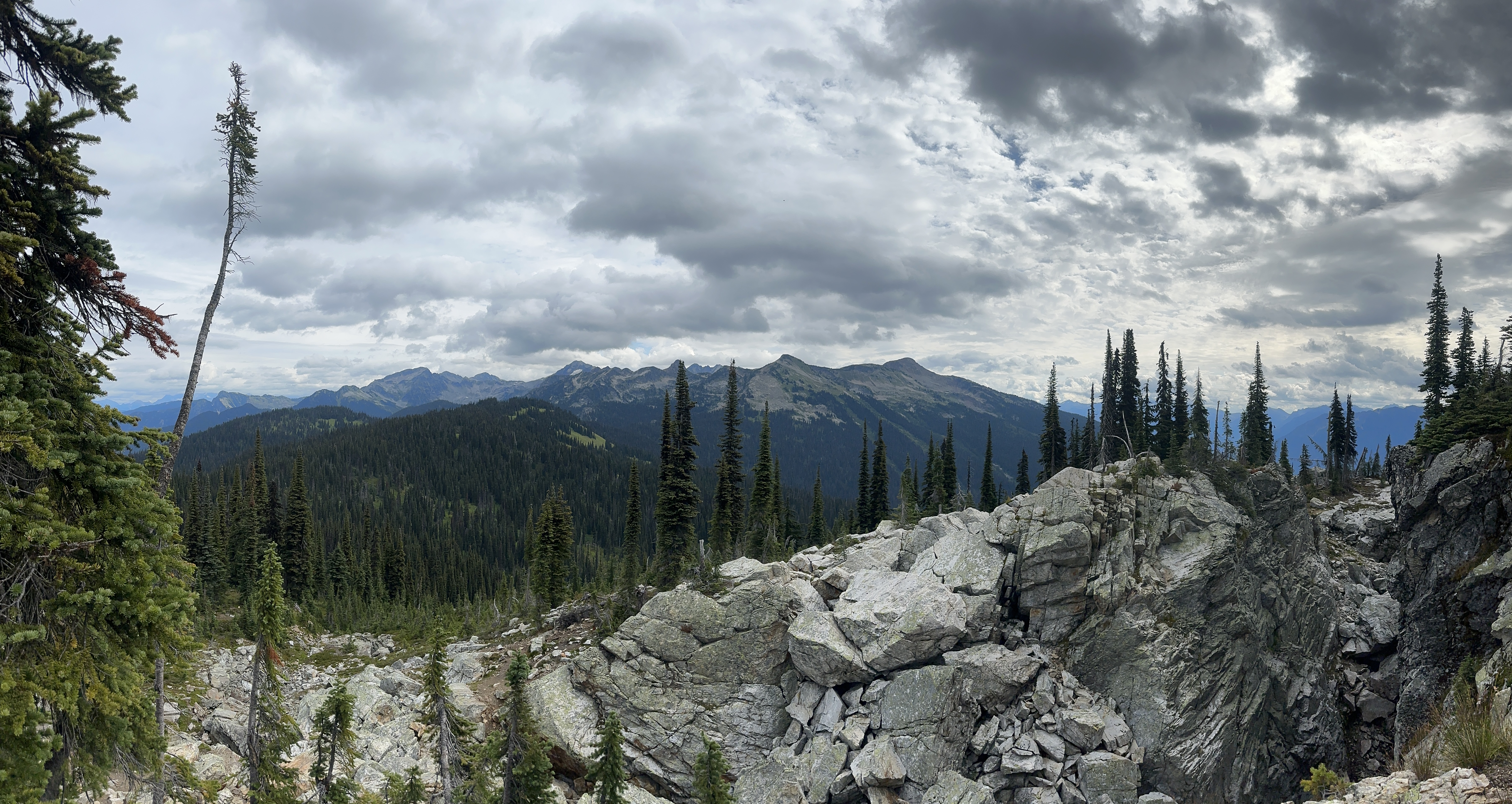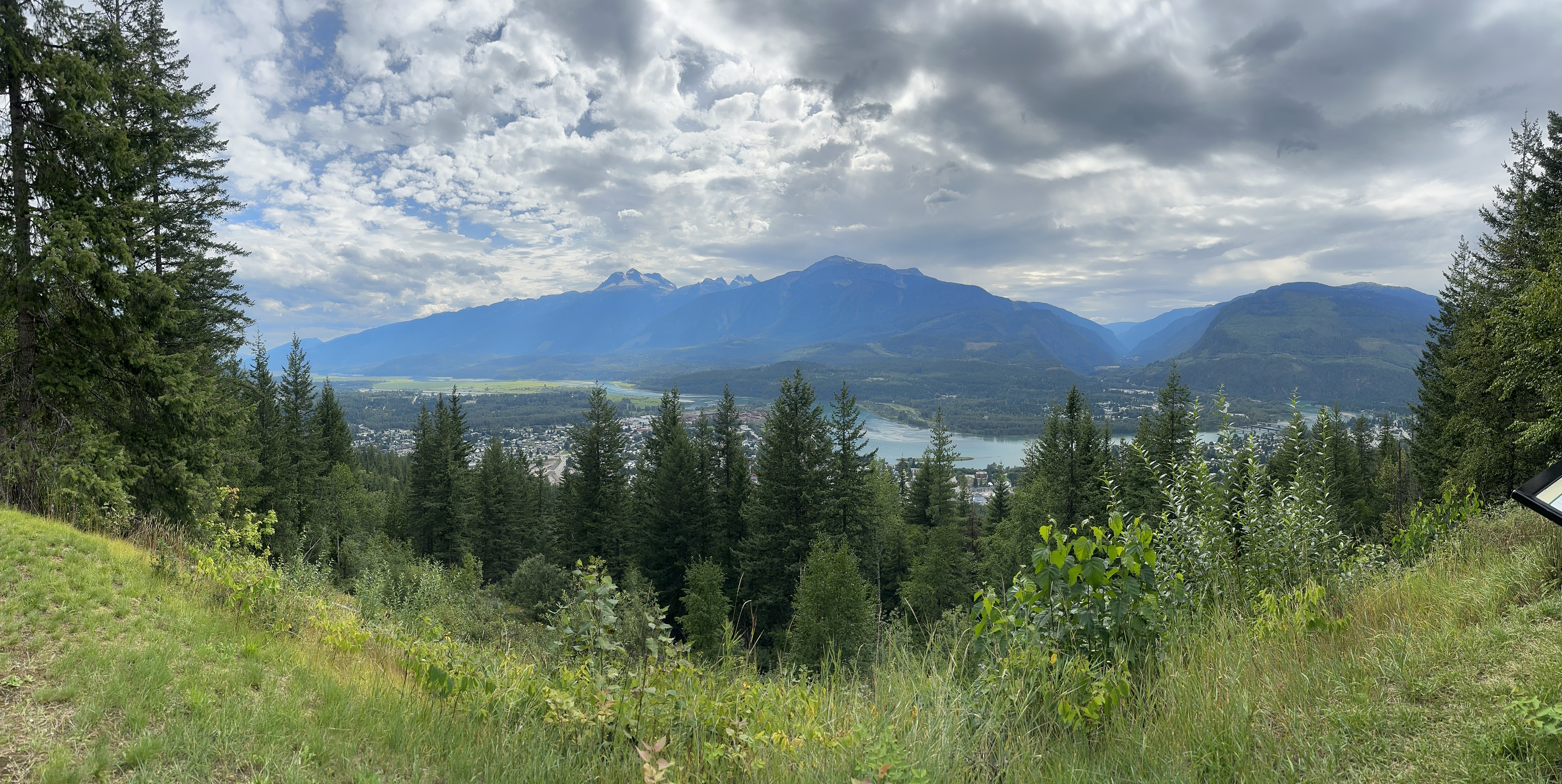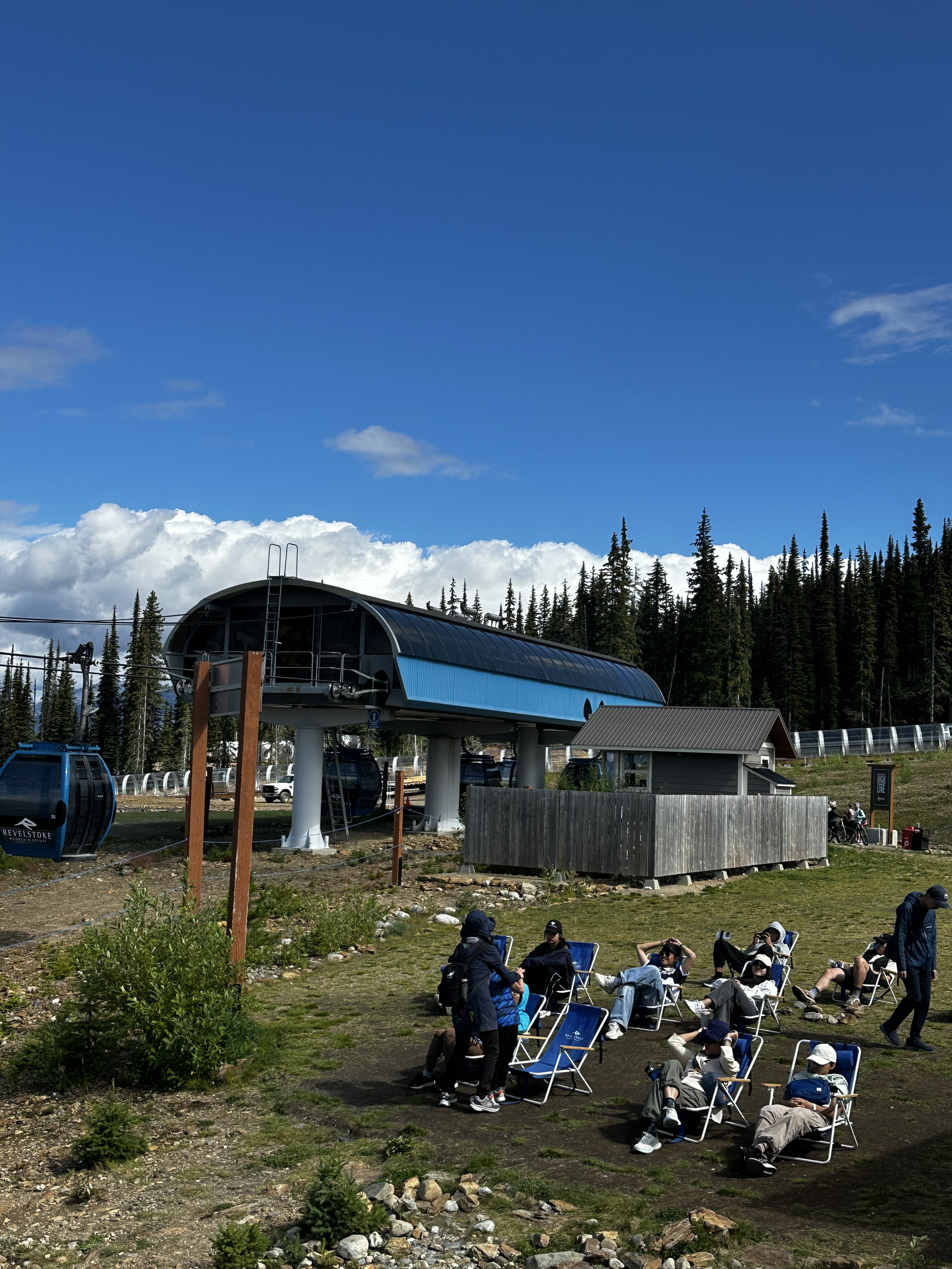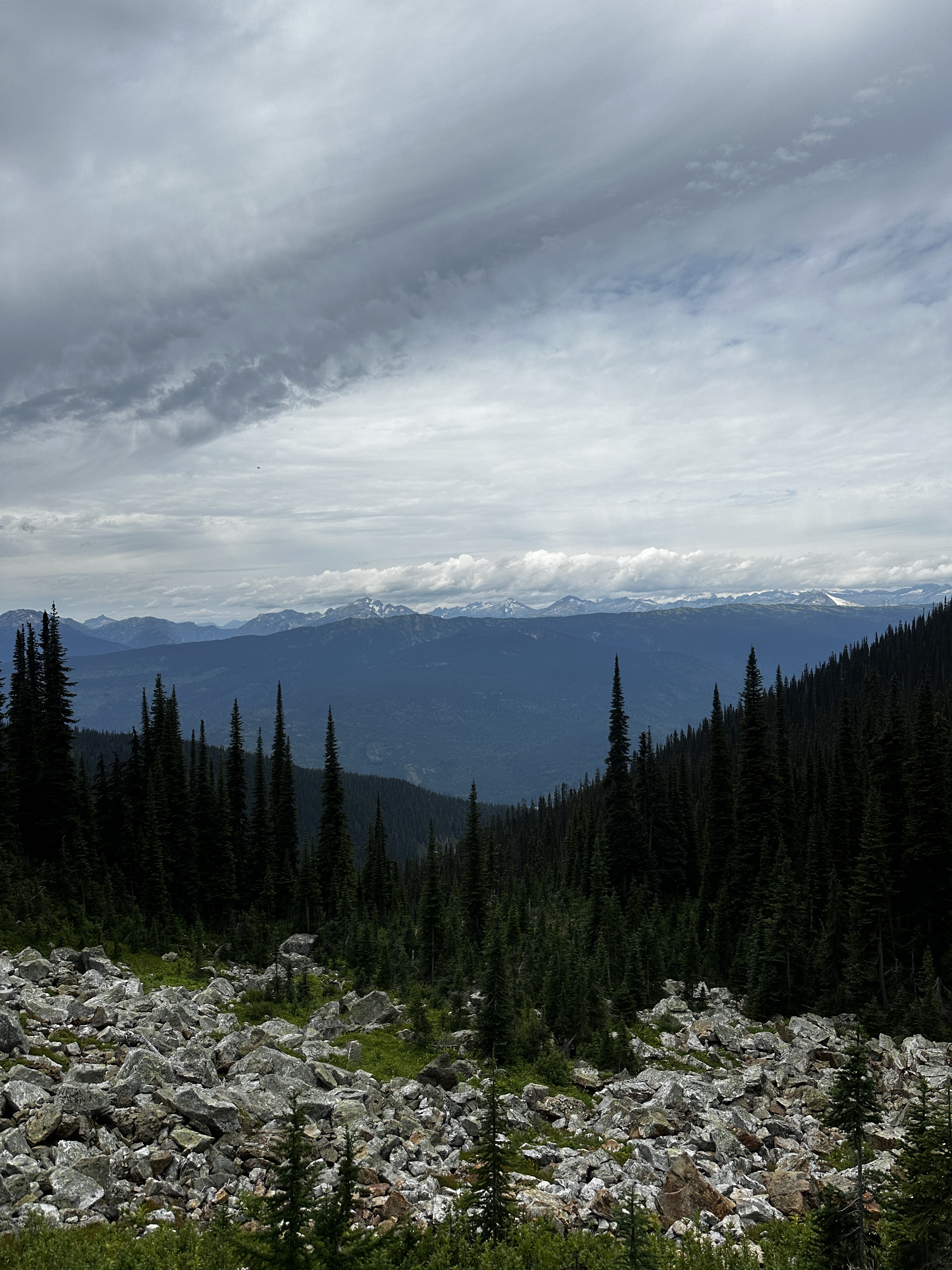 We got smart on the following day, and traded hiking boots for gondola tickets, gliding up Mount Mackenzie instead. Now this felt civilized—no pain, just instant scenery. From the top, we soaked up incredible views of the Monashees, including Mount Begbie, Blanket Mountain, and the impressive Blanket Glacier. That last one holds some history: Neil actually heli-skied there back in the 80s.