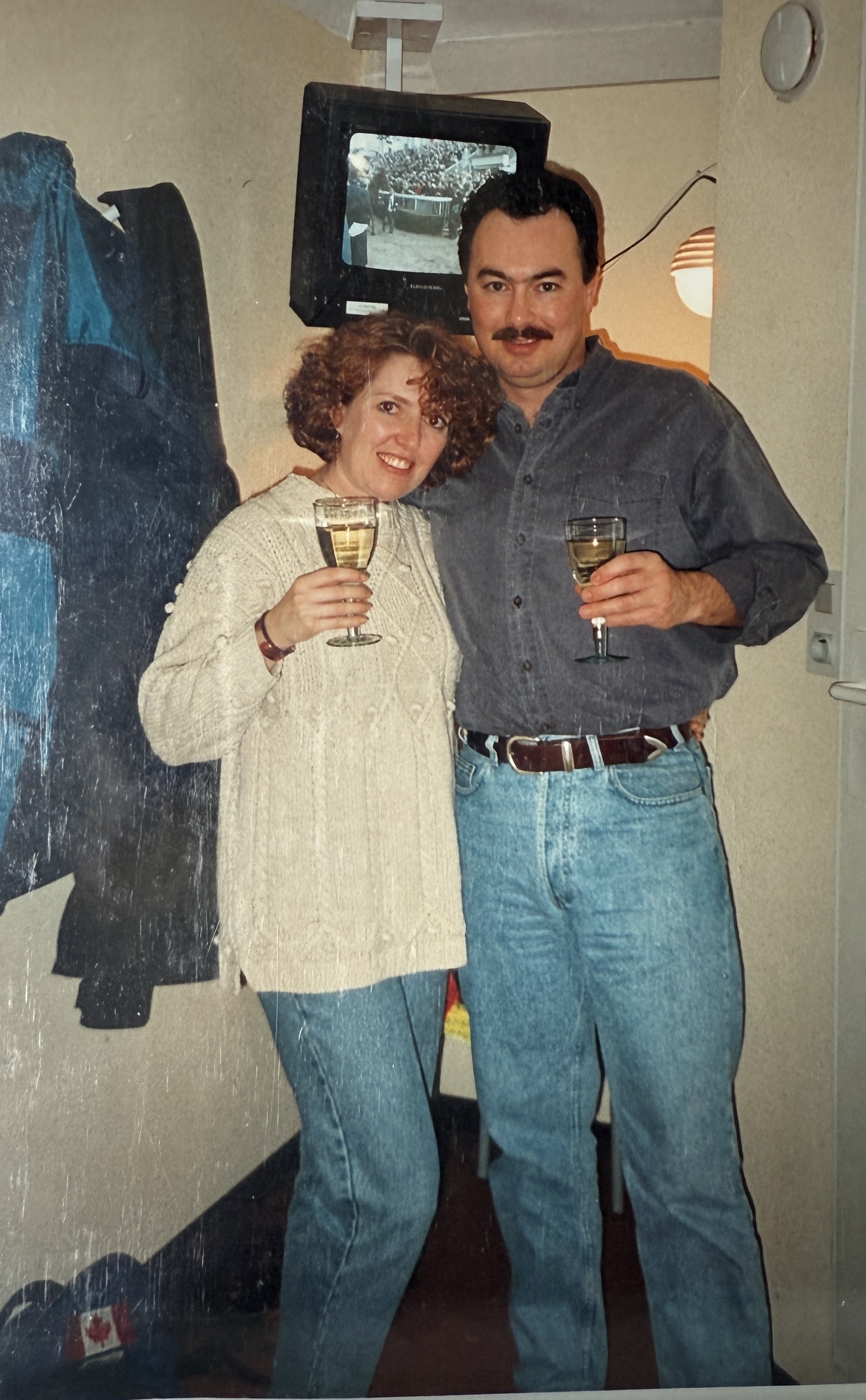 The photos of those charming outdoor cafés capture us in full 1994 glory—complete with some “what were we thinking?” outfits and hair that makes us both laugh (and wince). Neil even had some back then! What an incredible adventure it was for a couple of 35-year-olds, soaking up Europe one baguette and bottle of wine at a time.